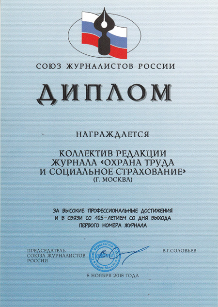 В 2012 году журнал «Охрана труда и социальное страхование» – единственный из СМИ, специализирующихся на тематике охраны труда и страхования, награжден Знаком отличия «Золотой Фонд прессы-2013». В 2013 году Государственная Дума ФС РФ, учитывая активную позицию журнала и его существенный вклад в обеспечение прав и свобод граждан Российской Федерации, наградила журнал Почетной грамотой. Министерство труда и социальной защиты РФ, Федерация независимых профсоюзов России, Федеральная служба по труду и занятости, Союз журналистов России также наградили журнал «Охрана труда и социальное страхование» и его работников ведомственными наградами. Это свидетельство авторитета, уважения и востребованности нашего издания.